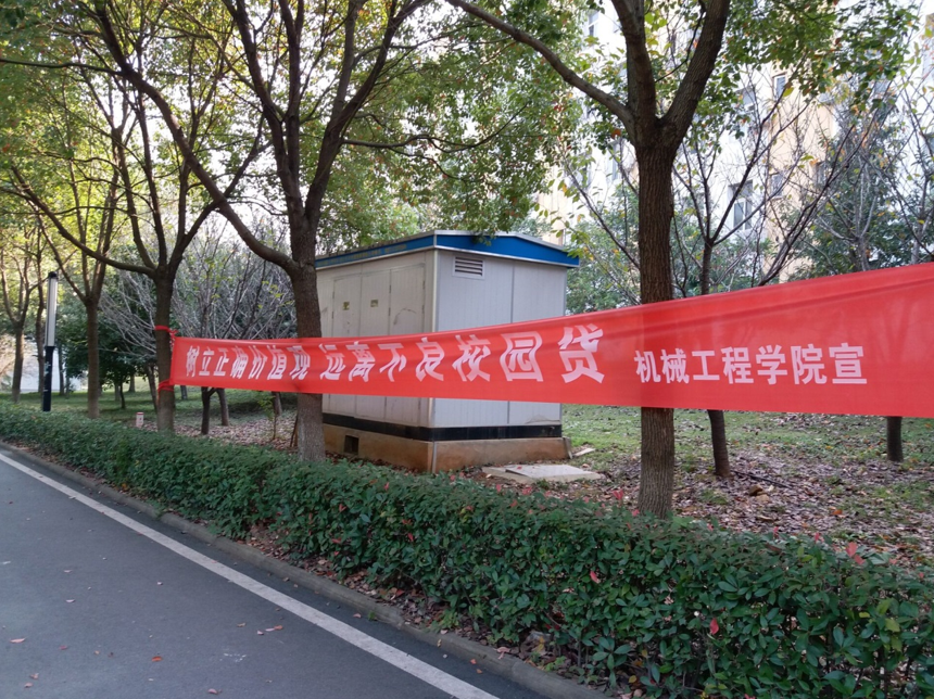 (通讯员 彭丹丹赵亮)为了进一步提升机械工程学院学生防范各类诈骗和抵御不良校园贷的意识,帮助学生树立正确的价值观,有效遏制“不良校园贷”,10月28日上午8点,我院在15栋、16栋公寓楼下悬挂了“树立正确价值观远离不良校园贷”、“不良校园贷,火药桶!别碰!”等警示标语。希望“校园贷”能彻底远离广大同学,同时也让同学们学会理性消费,提高防范意识和认知能力,共同营造一个健康安全的生活、学习环境。