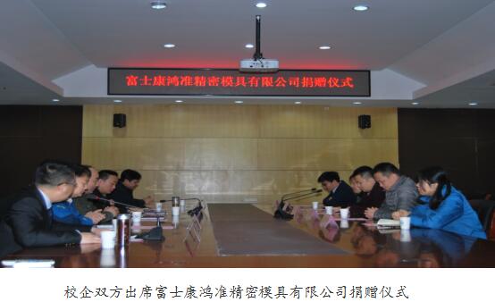 (通讯员尹慧玲 彭丹丹)3月13日,富士康鸿准精密模具有限公司郑国辉经理、富士康南通培训中心李孙东经理莅临我校,就鸿准模具订单班教学设备捐赠项目与我校开展校企合作交流。王路群副校长、教务处、校企合作处、实习实训中心、机械工程学院负责人参加了此次捐赠仪式,捐赠仪式由机械工程学院蒋保涛副院长主持。