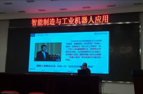 胡成龙教授首先以国务院近期发布的中国制造2025国家战略为指引,主要对照德国工业4.0高科技战略计划,总体上讲述了中国制造业的现状与中国制造2025的五项重大工程和十大重点领域,并对制造业转型升级的核心即信息技术和制造技术的深度融合作了深入解析,概括数字化、网络化、智能化为制造业创新驱动转型升级的核心与关键。随后,又详细阐述了智能制造的基本原理、以及工业4.0涉及的3D打印、工业机器人、工业物联网等重要技术支柱,智能制造应用路线的关键在于数字化网络化智能化的产品创新、制造技术创新以及产业模式创新。并从总体上介绍智慧工厂的智能生产、智能物流及智能服务的系统框架。之后,重点对工业机器人组成及其关键技术作了详细讲解,并介绍了工业机器人在各行各业的典型应用案列。最后,胡成龙教授从国际视野和国家战略的高度分享了自己的思考与展望,指出企业创新发展、转型升级,建设现代服务型制造业应坚持人才第一理念、紧扣中国制造2025、一路一带战略、长江经济带战略等国家战略,服务于国家战略,企业才会前景广阔。
