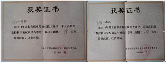 (通讯员范有雄、焦红卫、高娟)在11月15、16日举行的2014年湖北省职业院校技能大赛高职组数控机床装配调试与维修赛项中,我校2012级数控技术专业6名学生组成两支代表队参赛,并分别获得一个团体一等奖和一个团体三等奖。
