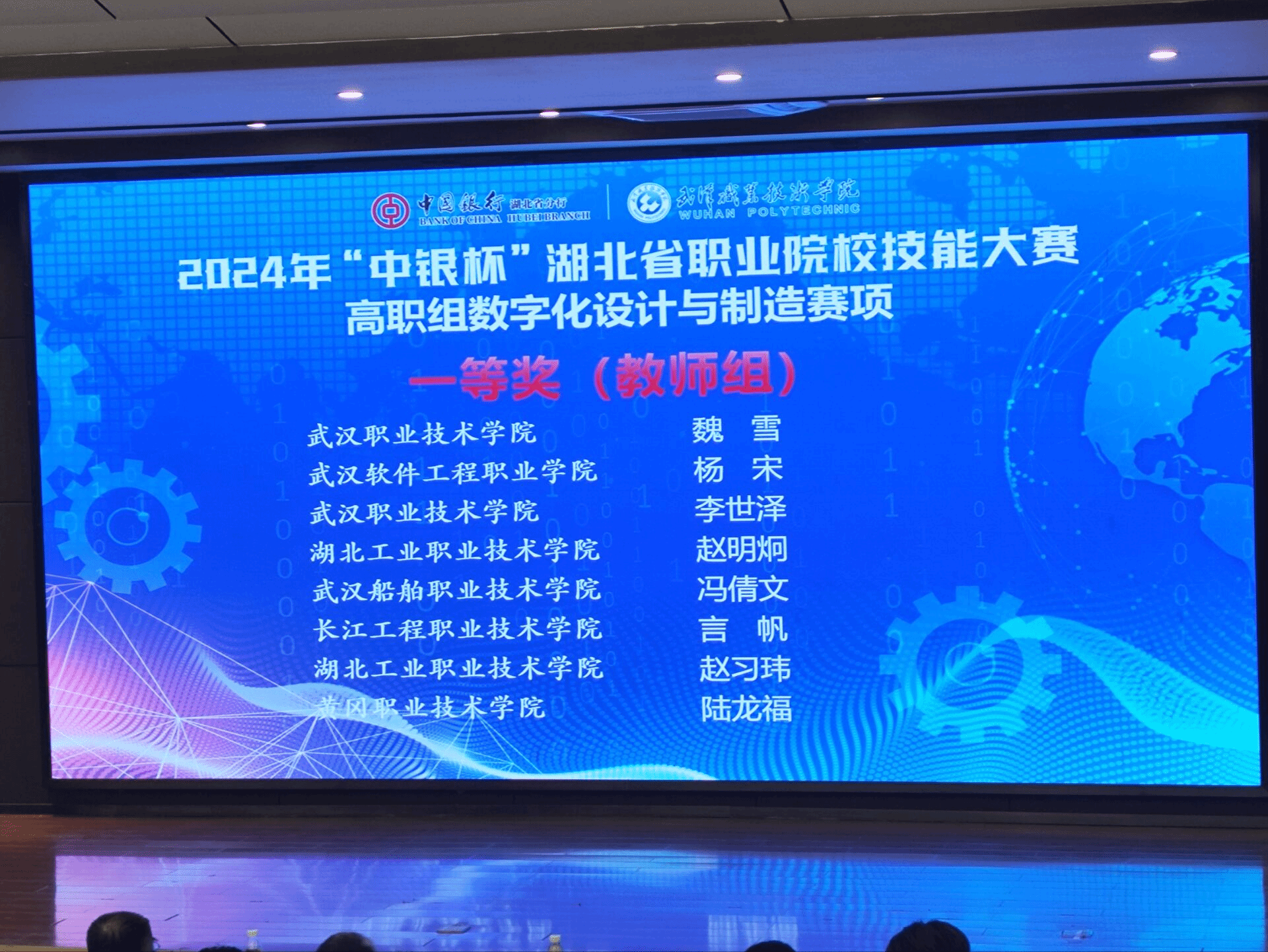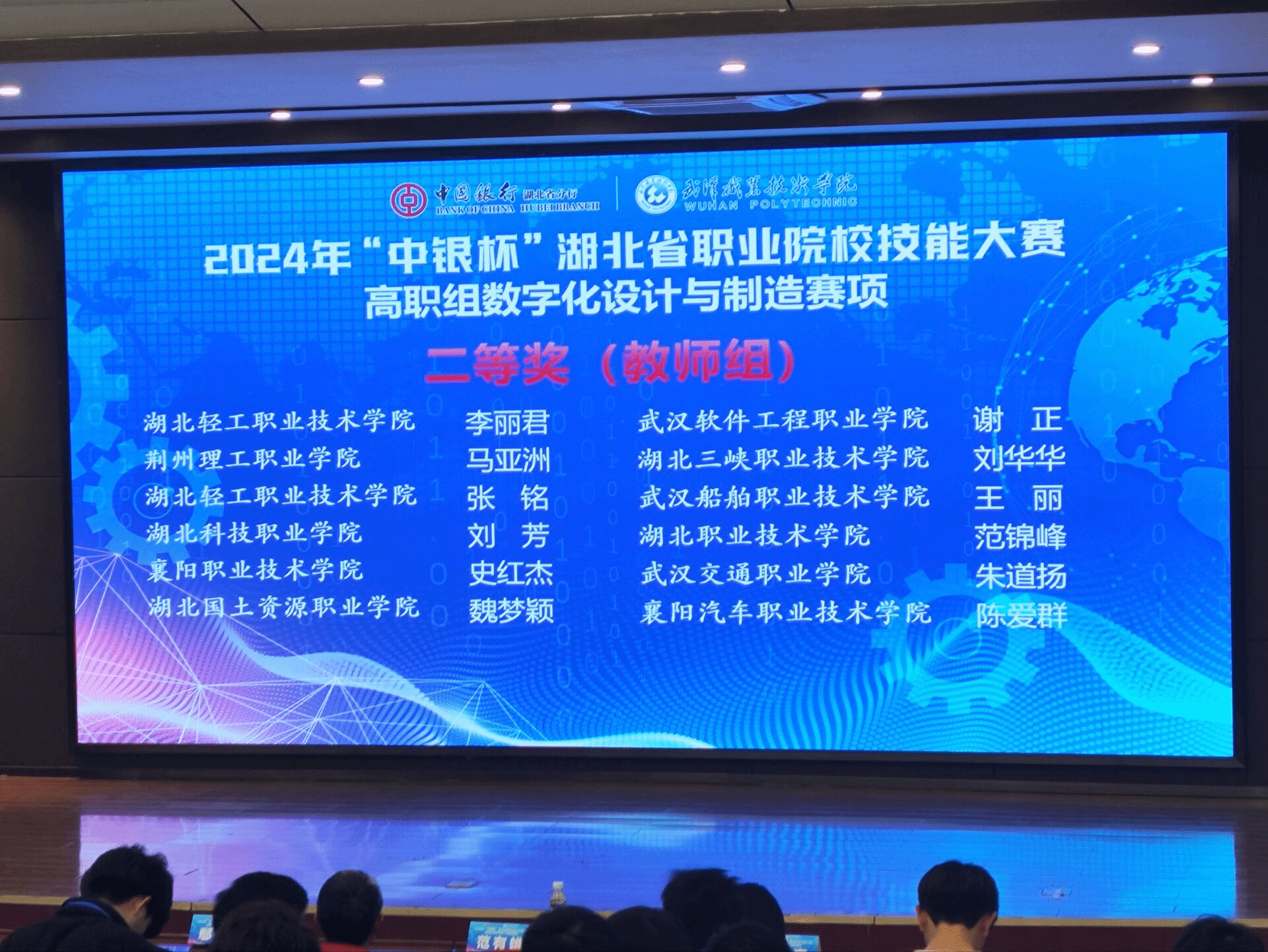 2024年“中银杯”湖北省职业院校技能大赛(高职组)数字化设计与制造赛项在武汉职业技术学院落下帷幕。本次比赛共有学生组推荐队和抽测队各36支以及教师组58人参赛,赛程4天,竞争十分激烈。由机械工程学院组建的6人教师团队经过艰苦卓绝的鏖战,最终斩获佳绩,获一等奖和二等奖各两项。