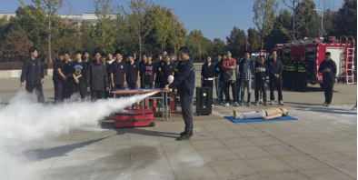 疏散完成后,活动现场开展了灭火器使用方法教育展示活动。学生代表详细讲解了安全演练的注意事项,分析火灾原因以及生活中如何预防火灾的发生,带领大家进行现场灭火器演练,学生及老师逐一进行演练。