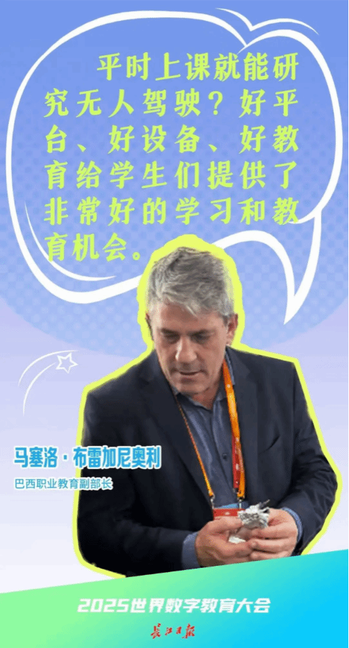 巴西职业教育副部长马塞洛·布雷加尼奥利在参观时赞叹道:"平时上课就能研究无人驾驶?好平台、好设备、好教育给学生们提供了非常好的学习和教育机会”。