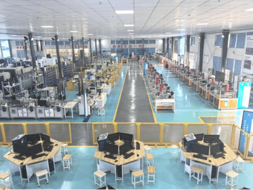 智能制造产线实训区:在真实的伺服电机端盖加工场景中,升级工业互联网平台,实现 4 台数控机床、9 台工业机器人与智能立体仓库的毫秒级协同控制。组建现场工程师班教学改革,聘请华数企业导师为现场工程师班授课,培养学生智能制造产线的联调及解决现场复杂问题的能力。
