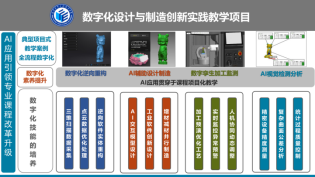 实训区升级案例:中心运用 “虚实结合、能力进阶” 的教学模式,融入人工智能技术,划分 9 个教学区。前 6 区训练专项技能,后 3 区磨炼复合技能,致力于培育智能制造领域高端技能人才。数字化设计与制造全流程创新实践区,融入人工智能技术培养学生设计制造与创新能力;智能制造产线实训区开展学徒制,提升学生解决复杂问题和就业的能力。