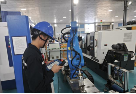 智能制造单元维护实训区:引入华中数控人工智能数控系统,使学生快速掌握数控加工工艺与编程技术;校企联合研制自动换刀装备,在加工过程中实时监测刀具磨损情况,通过快速自动换刀技术,提高生产效率,助力企业智能升级。