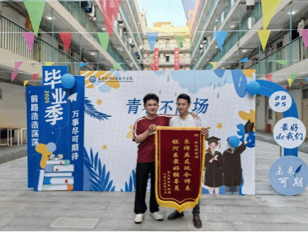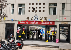 为营造温馨且具仪式感的毕业氛围,学院精心策划、用心布置。在16栋宿舍大门,一条条鲜艳的横幅迎风招展,仿佛在为毕业生们送上最真挚的祝福。