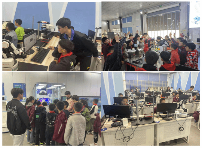 活动期间,我院安排工业机器人专业现代学徒制2402班14名学生积极配合,对小学生们进行一对一答疑指导,实物展示,单人单机实际操作,让他们感受到了一场别开生面的职业体验课。在实践中培养孩子们的动手能力,激发孩子们对机器人的兴趣,感受机器人的魅力所在。