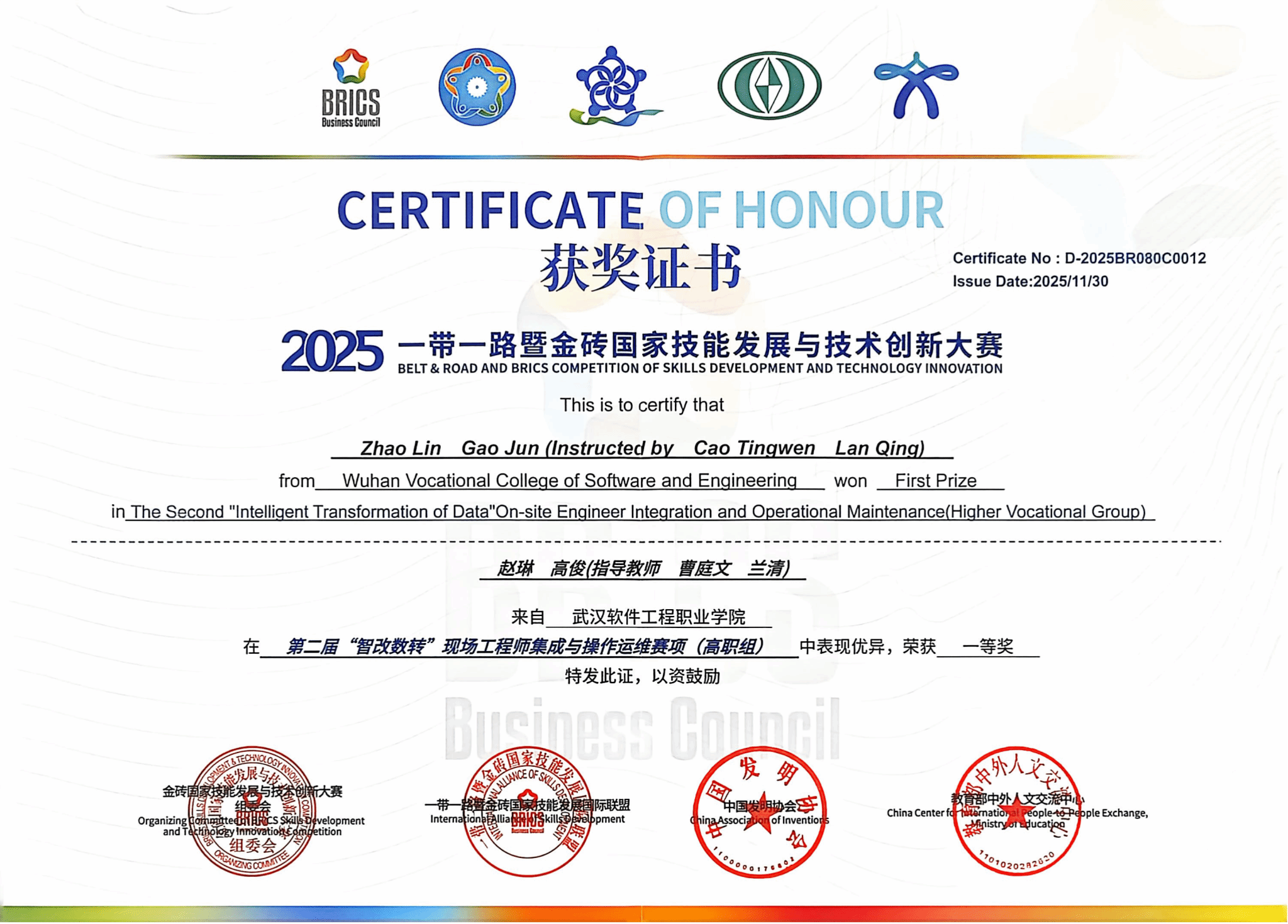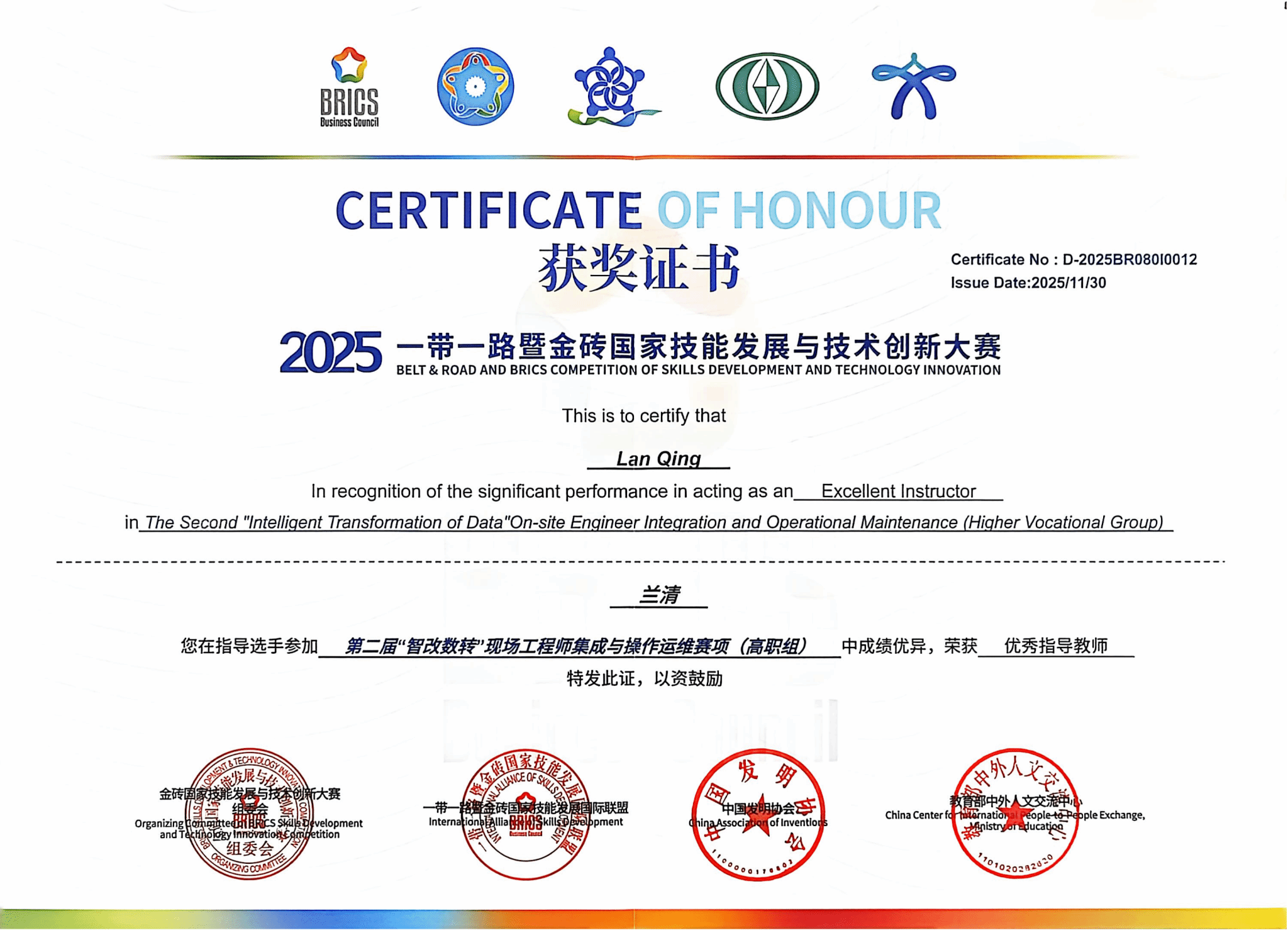 这份荣耀,是参赛学子日夜钻研、刻苦训练的汗水结晶,是指导教师悉心教导、保驾护航的匠心付出,更是学校深耕“智改数转”领域人才培养、深化产教融合的生动成果。