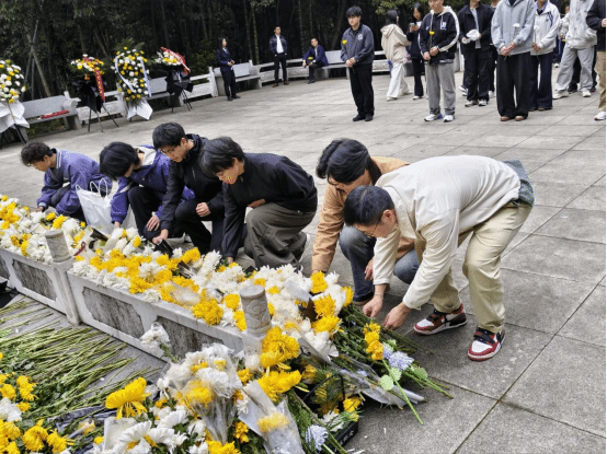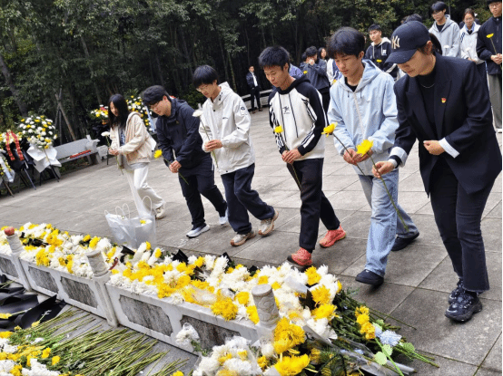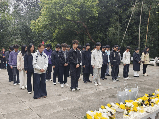 随后,全体师生整齐肃立在项英烈士雕像前,神情庄重。伴随着肃穆的氛围,大家向为民族解放和国家富强英勇献身的革命先烈默哀致敬,依次敬献鲜花,以最朴素的方式表达对革命先辈的崇高敬意与深切缅怀。