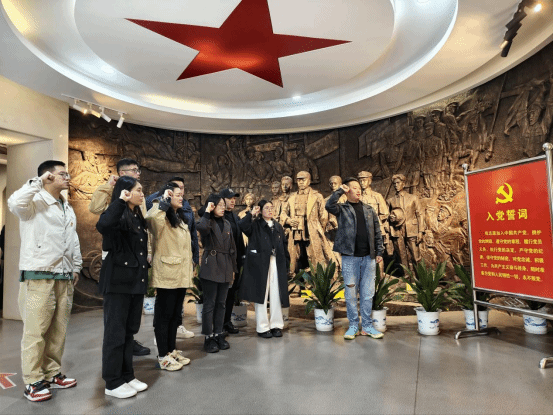 在纪念馆内,全体党员首先面向党旗庄严宣誓,重温入党誓词,铭记初心使命,进一步强化党性修养与责任担当。宣誓结束后,全体师生共同参观展厅,驻足观看历史图片、文献资料与革命实物,认真聆听讲解员对革命历程的生动讲述。一件件珍贵文物、一段段感人故事,让大家深刻体会到今日幸福生活的来之不易,直观感悟革命先辈不畏艰险、舍生取义的崇高精神,接受了深刻的精神洗礼与党性教育。大家在参观中交流感悟、共学红色历史,在沉浸式教育中凝聚思想共识,厚植家国情怀。