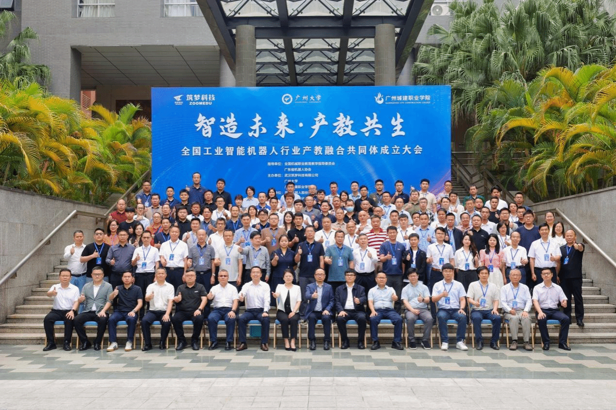 本次共同体由全国机械职业教育教学指导委员会、广东省机器人协会指导,武汉筑梦科技有限公司、广州大学、广州城建职业学院联合发起,旨在整合行业优质资源,深化产教融合,全面提升工业智能机器人领域技术研发与高素质技术技能人才培养质量。共同体将聚焦“课程教材开发、师资团队共建、创新平台共享、关键技术攻关”四大核心任务,打造“教育链、人才链、产业链、创新链”四链融合的全国性产教融合新范式。