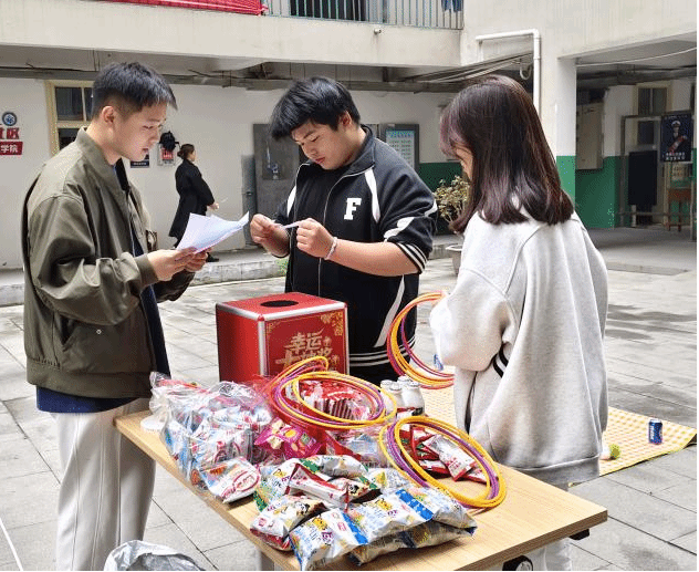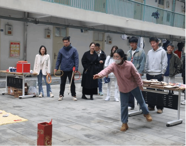“投走烦恼,壶纳福气”投壶区,同学们凝神投掷、从容参与,在传统游戏中放松身心,投中即可解锁DIY创作资格,传递“勇敢尝试、收获美好”的积极信念。“圈住美好,悦纳自我”套圈区融入心理健康知识问答,同学们在答题中学习心理常识,用套圈捕捉小惊喜,在互动中感受快乐与成就感。