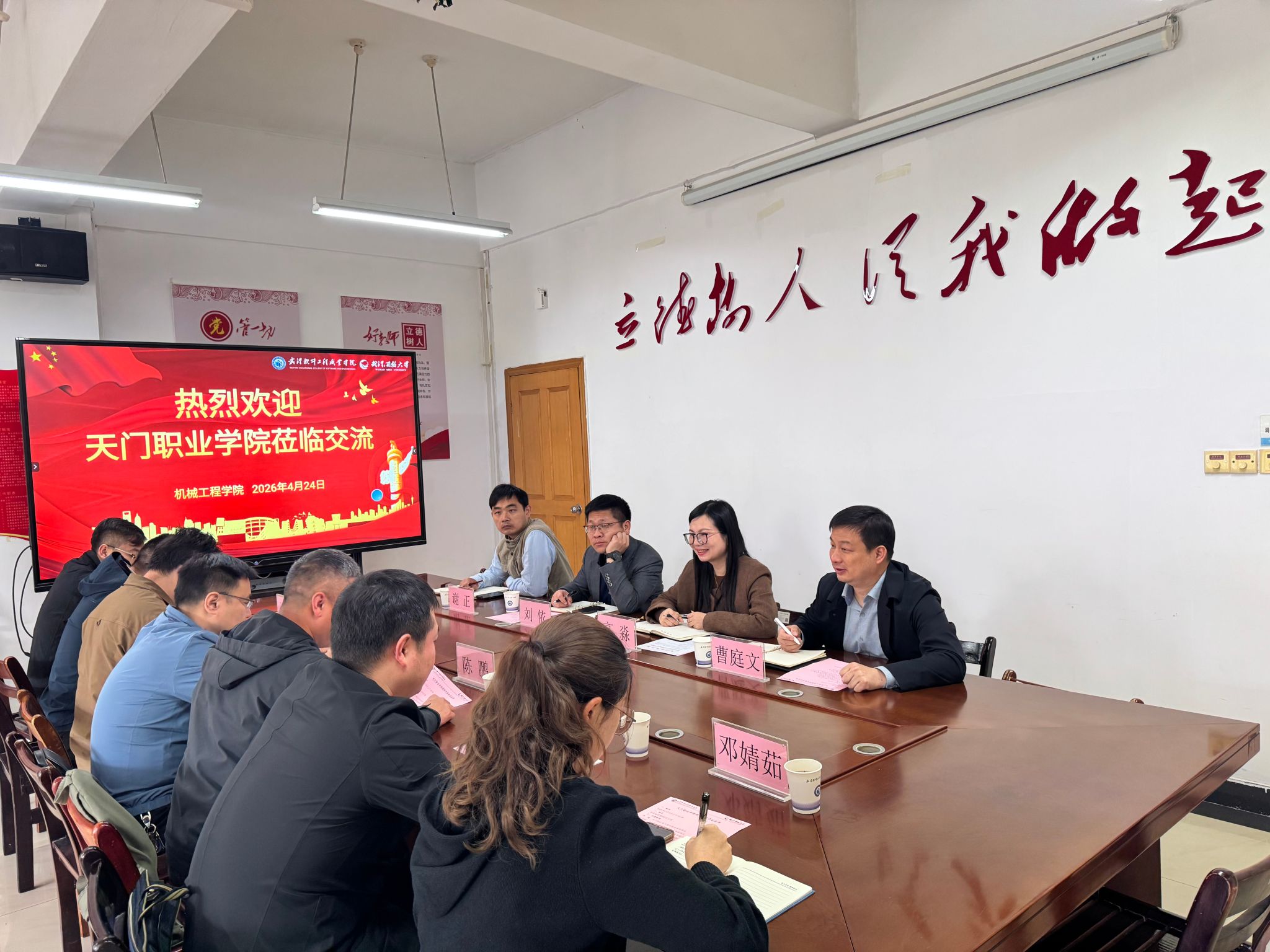 (通讯员:邓玲)为加强职业院校间的交流协作,借鉴兄弟院校办学治校的经验做法,进一步提升自身专业建设水平和人才培养质量,2026年4月24日上午,天门职业学院一行7人,在智能制造学院院长陈鹏、副院长何汉斌的带领下,来我院开展专项交流学习活动,双方围绕专业群建设、人才培养、技能竞赛、实训管理等核心议题展开深入探讨。