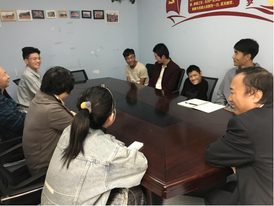 机械工程学院机自1903班是校长联系班级,在16栋宿舍2楼的活动室王校长见到了班级学生代表。王校长先做了自我介绍,说了自己家乡的特色,问同学们从哪里来,在武软生活、学习是否习惯,课余时间有什么兴趣爱好等等,学生们积极表达自己的想法,说武软很美丽,超出了自己的理想。饮食方面,食堂的种类和口味有很多,可以挑选,慢慢适应,学校里的多种社团也为丰富课余生活发展兴趣提供了大平台。骆阳同学是王校长需要联系的学生,也是机自1903班的学生,王校长关心地询问他学习、生活中的困难,还有与同学们的关系状况。