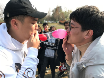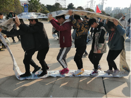 到达了第二个目的地草坪大转盘后,同学们稍作休整,随后开展“气球传杯”和“两人三足”活动,同学们齐心协力完成挑战,增强了同学们之前的团队协作能力。随后沿着藏龙大道到达藏龙岛大石碑,在这里开展了第三个活动—“无敌风火轮”,同学们群力群策,寓教于乐的游戏方式锻炼同学们的动手能力、合作能力以及资源分配能力。