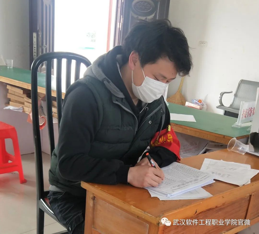 机器人1702班的毕光明积极响应村党支部号召,2月18日参与防疫。他每天进行健康普查,去超市采购、分发生活物资给村里居民,每天定点在村口对进出车辆摸排登记。