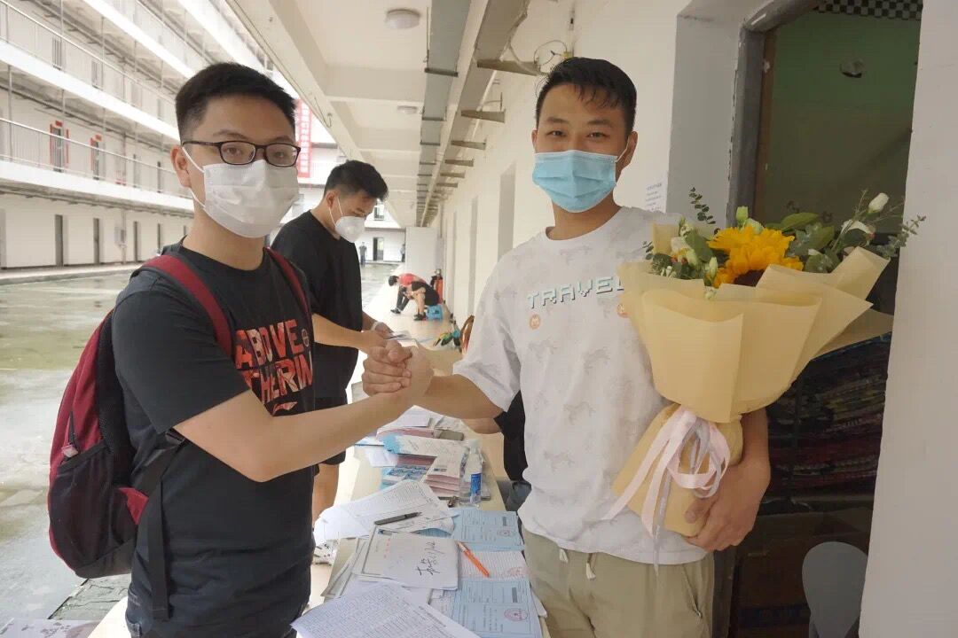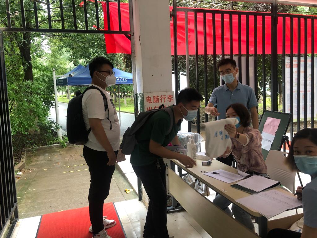 学院领导早早来到学生宿舍门口迎接毕业生“回家”。王中林院长介绍,为确保毕业生返校工作安全有序进行,我院在学校总体部署安排下,进行了充分的准备,对各项流程进行了多次演练,严格把控每个环节,从细节处入手,周密制定毕业生返校工作方案,对毕业生返校前准备、返校途中安全防护、进校后的健康监测管理、毕业证领取、个人物品领取、退卡退费、离校手续办理等全过程做了周密安排。针对可能发生的发热等突发情况,学院还制定了应急处置预案。