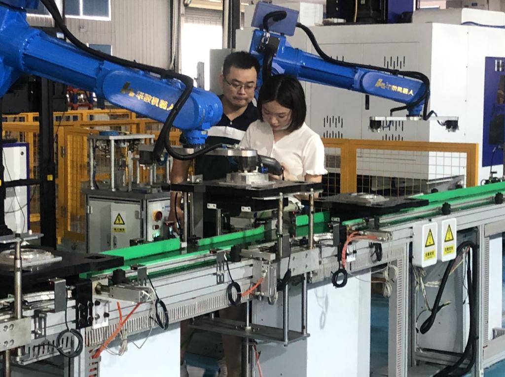 新进教师柴艺饶有兴趣地看着毛坯零件在绿色环形跑道上转一圈就完全变了个样,瞬间感觉“高大上”,为如此先进的智能产线用于教学感到非常惊讶。她表示,这些设备为我们教好学增添了信心,是我们培育高素质智能制造人才的“推进器”。
