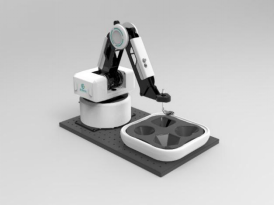 永远的star团队由来自机器人和数控专业的邵佳文、全宏伟、高贝仪、杨思远朱闯组成,设计作品《创客伯乐喂饭机器人》聚焦手抖人群、残障人士,能够有效解决他们因用手不方便造成的吃饭困恼,可通过语音、触屏的方式指挥机器人,达到喂饭和自主吃饭的效果,使他们能够重新享受用餐的乐趣。