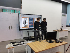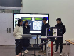 “光之巨人”团队由来自机自专业的魏毅、陈宗健、谢昊书组成,他们的设计作品《视觉导航移动消杀机器人》是智能化和数字化技术的机电一体化产品,是一种带人工智能的多用清洁小车,可以根据语音识别接收指令,为家庭、写字楼办公室、教室等室内,实现喷洒消毒液、净化空气、扫地等功能,节约人力成本,便捷家居生活。