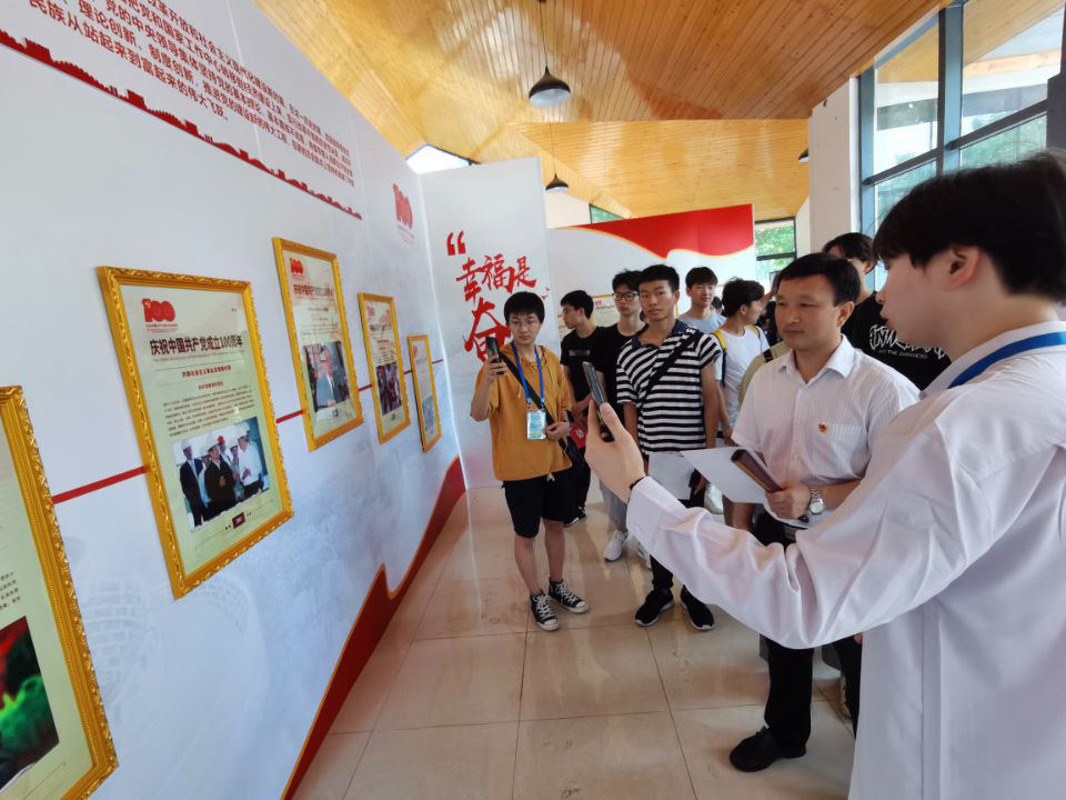 展览由《革命》《建设》《改革》《新时代》四个展区组成,以历史为纽带,以重大事件为节点,结合专业特色,运用VR/AR技术,给师生们带来别开生面的党史学习体验,助力师生们更好地回顾党的光辉历史,更加坚定理想信念,立足党的百年历史新起点,学好知识,增长本领,为建设中国特色社会主义立新功。