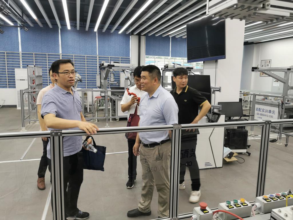 调研主要围绕工业机器人专业群师资队伍、校企合作模式、人才培养模式、1+X职业技能等级证书制度实施情况开展。王登峰副院长与随行老师参观了我院武汉市智能制造公共实训平台、智能机器人创新中心、西门子高级自动化实训室等实训基地建设情况。期间,王登峰副院长与我院王中林院长就专业建设、教学改革及人才培养等方面进行了深入交流。