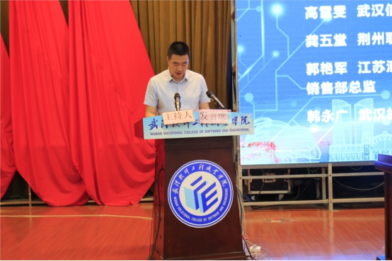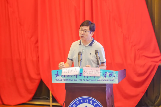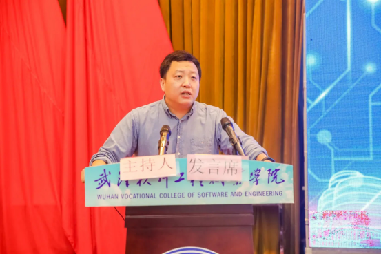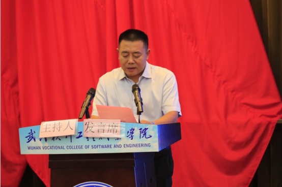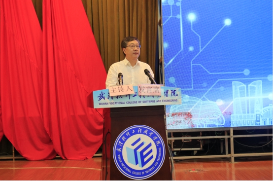 校党委书记马蜂致欢迎辞,他向各位领导、专家、学者表示最热烈的欢迎,对省市领导、兄弟院校、企业界及行业协会的朋友长期以来对学校的关怀、帮助和支持表示衷心感谢。他指出,我校自2013年牵头组建湖北信息技术职业教育集团以来,已陆续牵头组建武汉电子信息职教集团、武汉财经商贸职教集团、武汉智能制造职教集团、武汉生命健康技术职教集团、武汉服装智能制造职教集团。今天成立的湖北智能制造职业教育集团将作为智能制造产教融合平台,服务湖北省制造强省战略,助力新一轮技术改造升级,促进重点传统产业向高端化、智能化、绿色化发展,对接智能制造产业,形成政校行企资源优化和各成员单位的聚集机制,为湖北省智能制造产业发展提供人才支撑、技术支持。他表示,未来我校将紧紧围绕“湖北省级高水平高职院校和专业群”这一目标,贯彻落实《国家职业教育改革实施方案》,办好公平有质量、类型特色突出的职业教育,提质培优、增值赋能、以质图强,加快推进职业教育现代化,更好地支撑武汉乃至湖北地区经济社会持续健康发展。