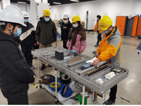 武汉华数锦明智能科技有限公司,是华中数控(股票代码300161)旗下的子公司,在新能源汽车动力电池设备、工业机器人、全自动包装设备、大物流系统和智能软件等领域具备国际一流的研发和设计制造能力,坚持以“工业4.0”为导向,致力于为全球客户提供智能制造的整体解决方案。目前该企业的新能源电池智能制造产线装调领域需要大量助理机械工程师、电气工程师和机械装配工程师等岗位人才,机自专业人才培养契合岗位技能的需求。面对着厂房中西门子S7-1200PLC、锂电池智能制造装配产线上的KUKA机器人、Solidworks中的多工位仿真产线等熟悉的设备和任务,创新班的同学们坚定了信心也满怀期待。
