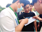 活动第一项,打卡签到。活动开始,到场的同学们以班级为单位依次排开,由班长带领,配合机械工程学院学生会文体发展部的干事们进行体温检测、打卡签到。