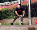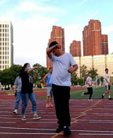 马俊带领同学们热身 侧向拉伸 侧向拉伸 马俊示范正确跑步姿势