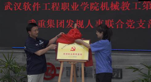 活动中,戴书记和企业支部书记戢琴为我校校外“思想政治教育基地”举行了揭牌仪式。