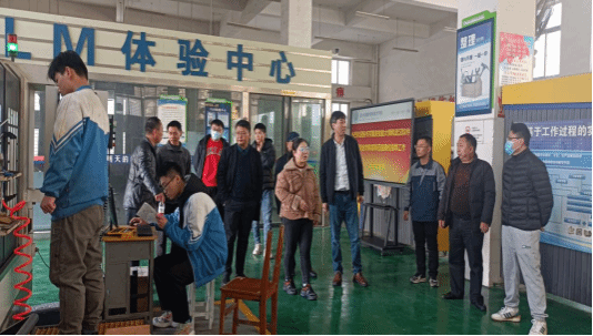 在黄陂职业技术学校彭险峰副校长等人的陪同下,先后参观了学校数控技术应用、机械加工技术等实训基地,并在智慧教室开展座谈交流活动。