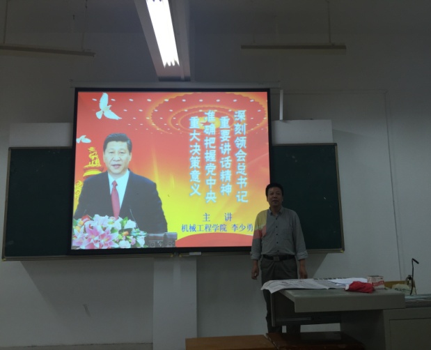 (通讯员 尹慧玲 李友君)根据中央、省委、校党委关于开展“两学一做”学习教育部署要求,5月19日,机械学院党总支书记李少勇以“深刻领会总书记重要讲话精神,准确把握党中央重大决策意义”为题为机械学院全体教工和党支部书记上了一堂生动的党课。