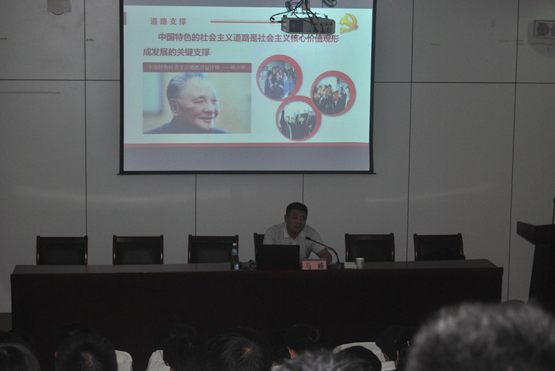 通过对社会主义核心价值观的详细介绍,各支部党员同志充分理解了其中“富强、民主、文明、和谐、自由、平等、公正、法治、爱国、敬业、诚信、友善”等各项含义,并且愿意主动加强自身建设。马峰校长也号召学生预备党员在成长成才的过程中,养成良好的道德行为规范,既要做中华传统美德的传承者,也要做社会主义核心价值观的践行者。在讲座中,马峰校长以幽默的姿态向各支部党员同志贯彻了社会主义核心价值观的思想,让各支部党员同志在活跃的气氛中学习到如何做一名合格的共产党员。使得学生对于社会主义核心价值观理解得更加透彻,更多的在自己的生活中践行。