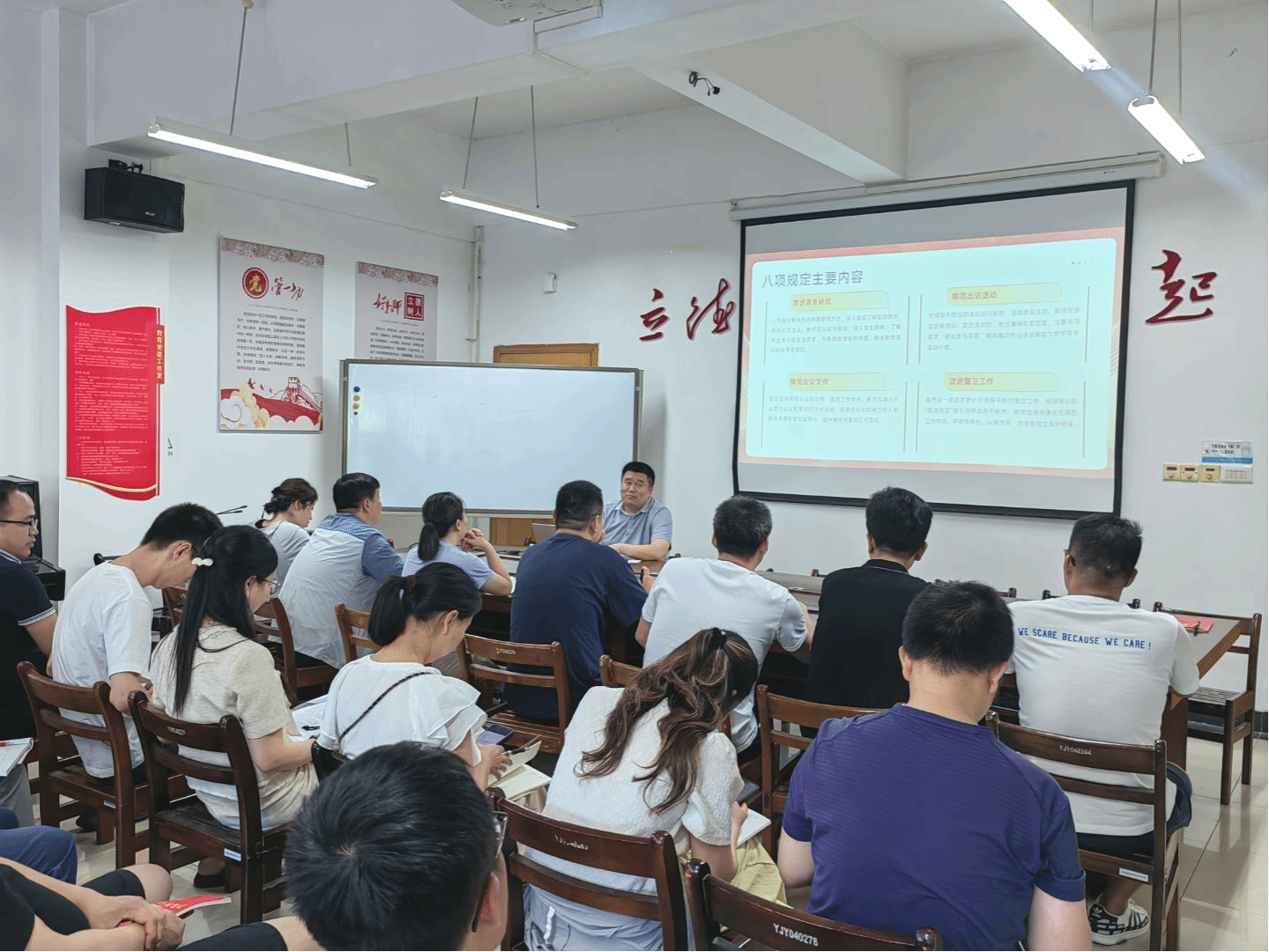 王中林强调,作风建设需多措并举形成合力:一方面要强化思想引领,另一方面要健全监督网络。同时,要注重发挥榜样示范作用,选树践行优良作风的教师典型,以身边人身边事激发看齐意识。这些看似细微的行动,正是作风建设最生动的实践载体。