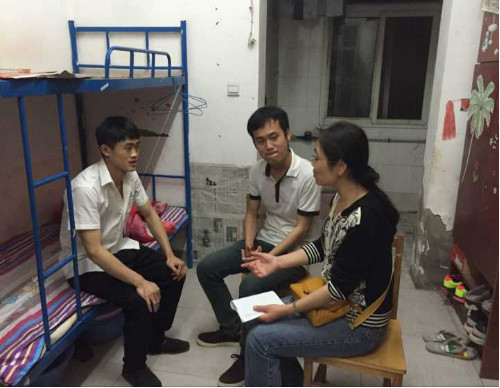 (通讯员 卢崇崇 冯攀)为建设温馨美丽的宿舍生活环境,同时及时关注跟进2013级学生就业情况,5月5日机械工程学院班主任走进每间2013级学生寝室,老师们询问同学日常生活中遇到的问题并给予了生活建议,叮咛同学们夏季来临一定要注意寝室安全,安全用电,禁止晚归,注意保持寝室的整洁。同时仔细询问了同学们参加招聘就业的情况,告诉同学们找工作一定要做多项准备,拓展就业能力,树立先就业后择业先生存后发展的就业观念,为就业打下良好基础。老师也鼓励大家要积极走出校园,到其他城市或者其他学校参加招聘,寻找机会,对满意的工作一定要紧紧把握好,不要错失良机。