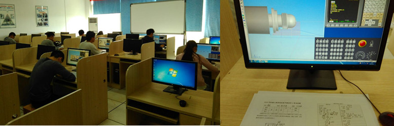 本次比赛分数控车床操作、数控铣床操作两个工种。为了突出计算机应能力,各工种的竞赛内容设置为数控加工编程仿真软件操作与数控加工仿真。竞赛采用规定120分钟闭卷完成较为复杂零件编程与加工,编写数控加工工艺及手工编程,由计算机仿真完成别写零件加工,通过仿真验证加程序的正确性,检查加工精度。比赛中,各位选手认真作答,完成了工艺与加工程序答卷,熟练操作仿真软件,完成零件加工。