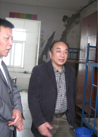 胡院长和李书记查看我院16栋漏水严重的626寝室