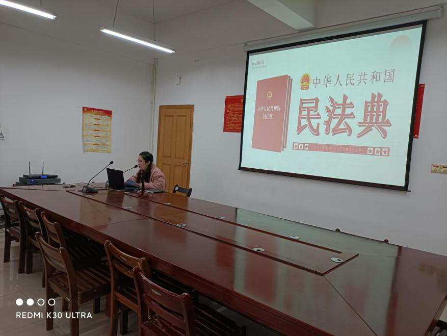 首先,通过视频了解《民法典》的制定背景和历程,学习了《民法典》的立法目的、民法的调整范围、基本原则。然后,团总支邓玲老师介绍了《民法典》出台的历史背景、重要地位和重大意义,编纂体例和四次编纂历程,并对《民法典》各编中具体的内容创新点进行了详细的讲述,内容涵盖物权、合同、人格权、婚姻家庭、继承、侵权责任等方面。