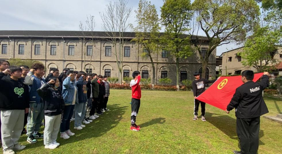 随后,戴永清书记在大操场的国旗下以“学史明志,奋进新时代”为主题为全体成员上了一堂“沉浸式”的微党课,从国共合作的历史背景谈到34岁的毛泽东主席倡议并创办武昌农讲所,在这里亲自授课引导学员们学习革命理论和农运常识,进行军事训练,参加社会斗争,奠定了农民武装革命的思想基础和阶级基础,将革命火种撒向全国。农讲所走出的800余名学员,奔赴全国各地,成为中国共产党在农村掀起土地革命风暴的中坚力量。94年前,毛泽东主席在武昌农讲所期间,完成了著名的《湖南农民运动考察报告》,他在这里的革命实践和理论思考奠定了他探索中国革命道路的初始之基。同时,戴书记也谈到,中国共产党建党百年来,风雨兼程,历经苦难辉煌,希望青马学员们能学史明理、学史增信、学史崇德、学史力行,谨记厚德尚能校训,培养良好的思想品德,提升为人做事的品质,厚植家国情怀。