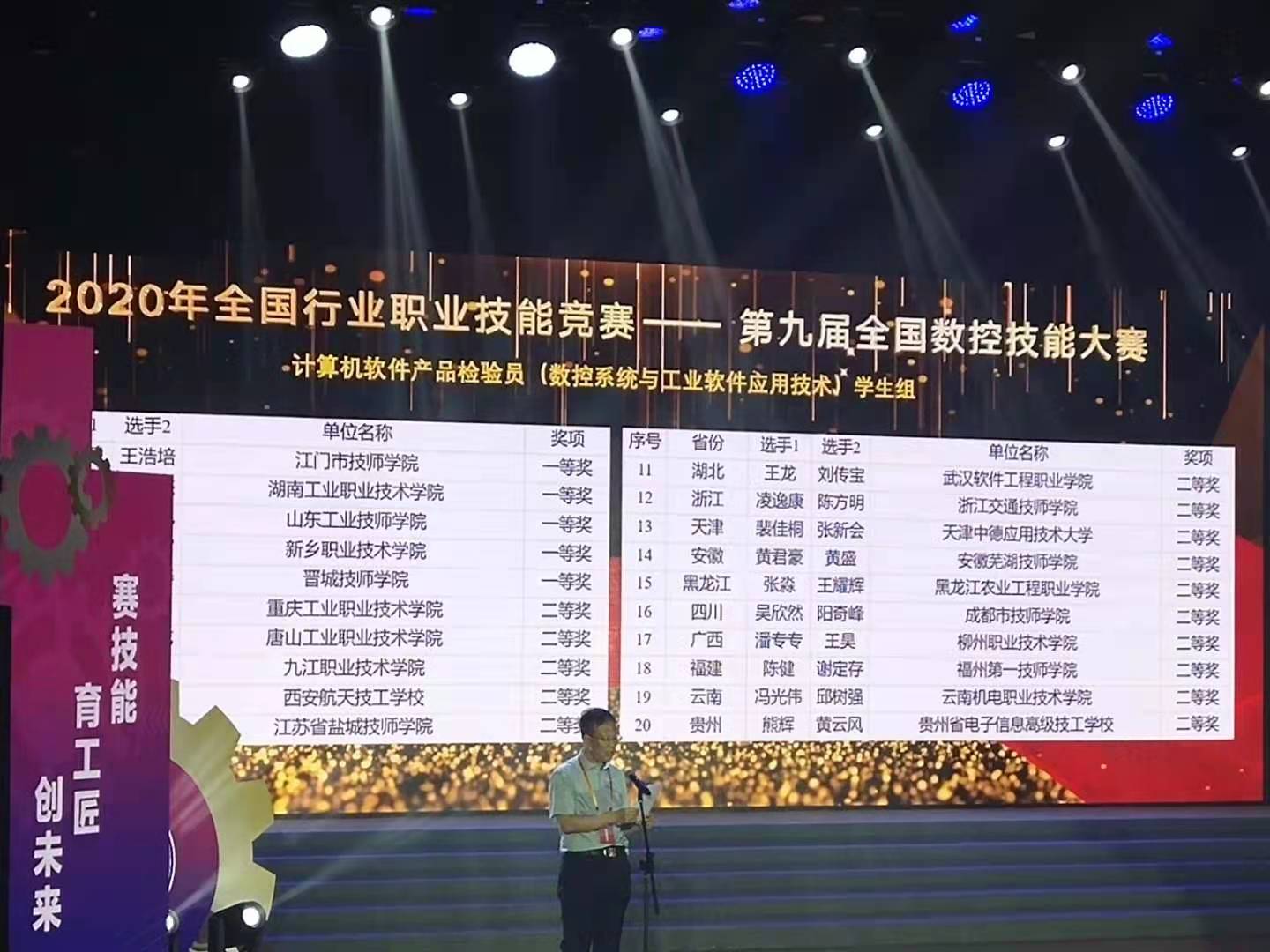 全国数控技能大赛由人力资源社会保障部、教育部、科学技术部、中华全国总工会、中国机械工业联合会等部门共同举办,是我国面向先进制造领域举办时间最早、影响最为深远的一类职业技能大赛,在培养和选拔数控高技能人才中发挥着了重要作用。大赛设置五轴联动加工技术、数控机床智能化升级改造、数控系统与工艺软件应用技术、数字化设计与制造等四个赛项,每个赛项分职工组、教师组、学生组三个组别。在3天的比赛中,来自全国31个省(区、市)及机械行业的近500名选手进行激烈比拼。周亚芳、范有雄老师指导的戴志恒、熊文海参加“数控机床智能化升级改造”赛项获国家二等奖,张桂花、谢正老师指导的王龙、刘传宝参加“数控系统与工业软件应用技术”赛项获国家二等奖。