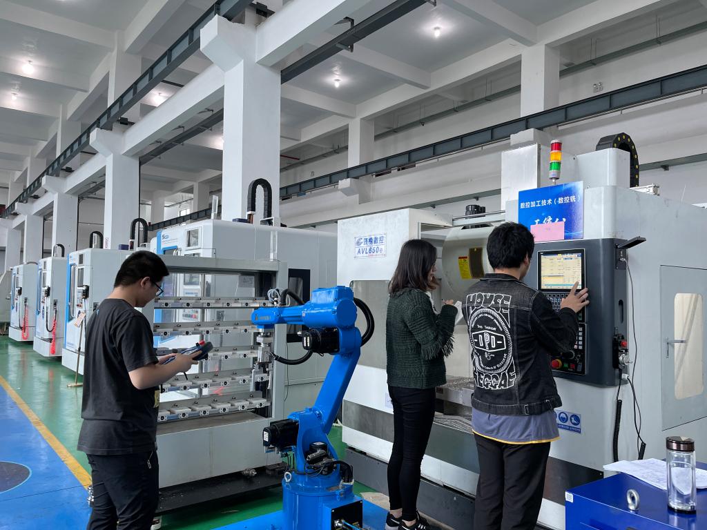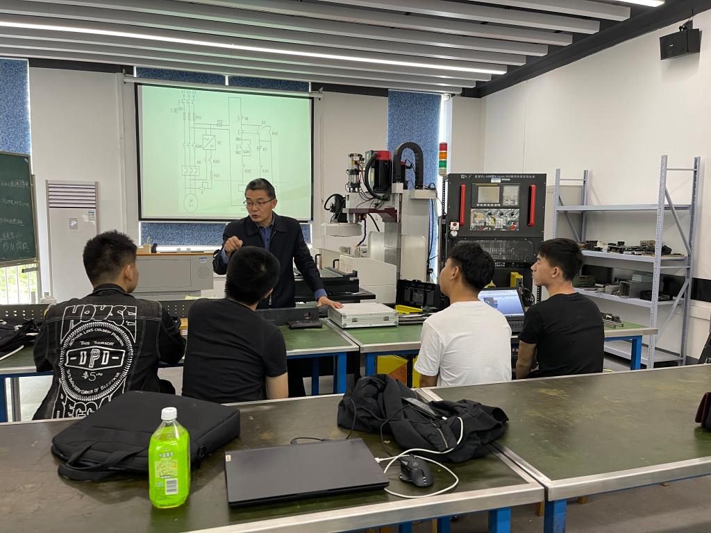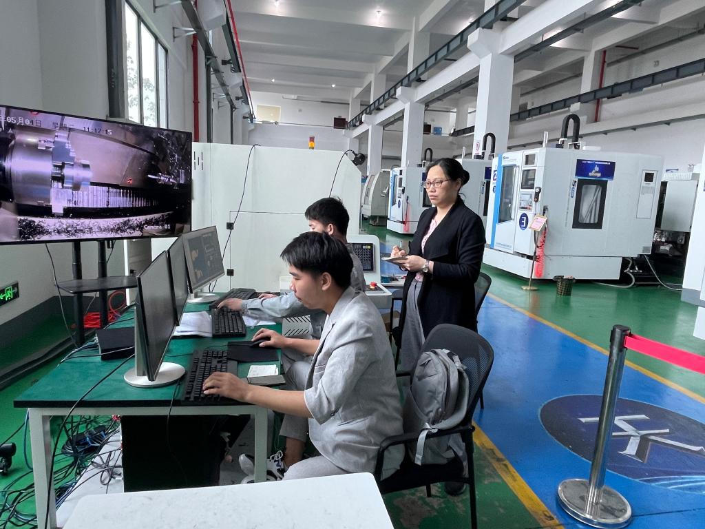为寻找自身与优秀选手的差距,指导老师张桂花、周亚芳带领参赛学生去往湖南华数智能技术有限公司参加适应性训练。克服困难,反思不足,沉下心来补短板,用勤奋、汗水和拼搏刻苦训练,历经三轮模拟测试赛后,学生技能水平得到了飞速提升。在出征比赛前,指导老师范有雄再次解读竞赛要点,分享了自己的执裁经验,提醒学生参赛注意事项,务必把握比赛节奏,紧扣得分点完成任务。指导老师谢正老师仔细检查学生所带刀具,为学生检定好量具,全力做好赛前技术支持工作。