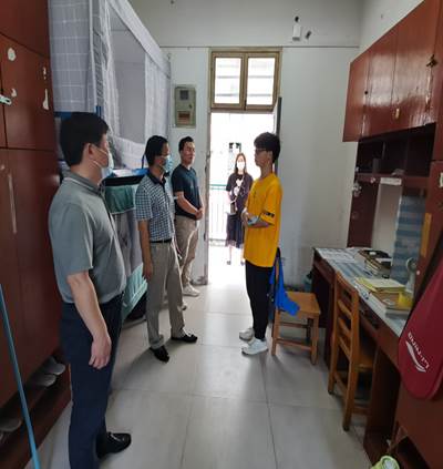 (通讯员:段海晶)6月14日中午12点30分,机械工程学院党总支书记戴永清、副书记陆军以及毕业班辅导员到16栋寝室,走进宿舍察看学生在寝室里的生活、学习情况。