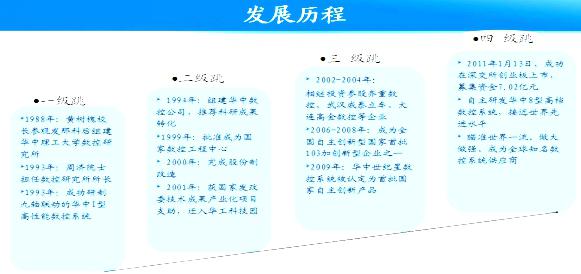 武汉华中数控股份有限公司创立于1994年,是一家国有控股的高新技术企业、首批国家级创新型企业,是我国中高档数控系统以及主轴驱动系统研发和生产的龙头企业,是我国数控系统行业首家上市公司(股票代码:300161)。华中数控的目标是:成为世界一流的数控系统企业,用“中国大脑”,装备“中国制造”。新的起点,新的平台!热烈欢迎广大有志之士加盟华中数控,共谋发展!