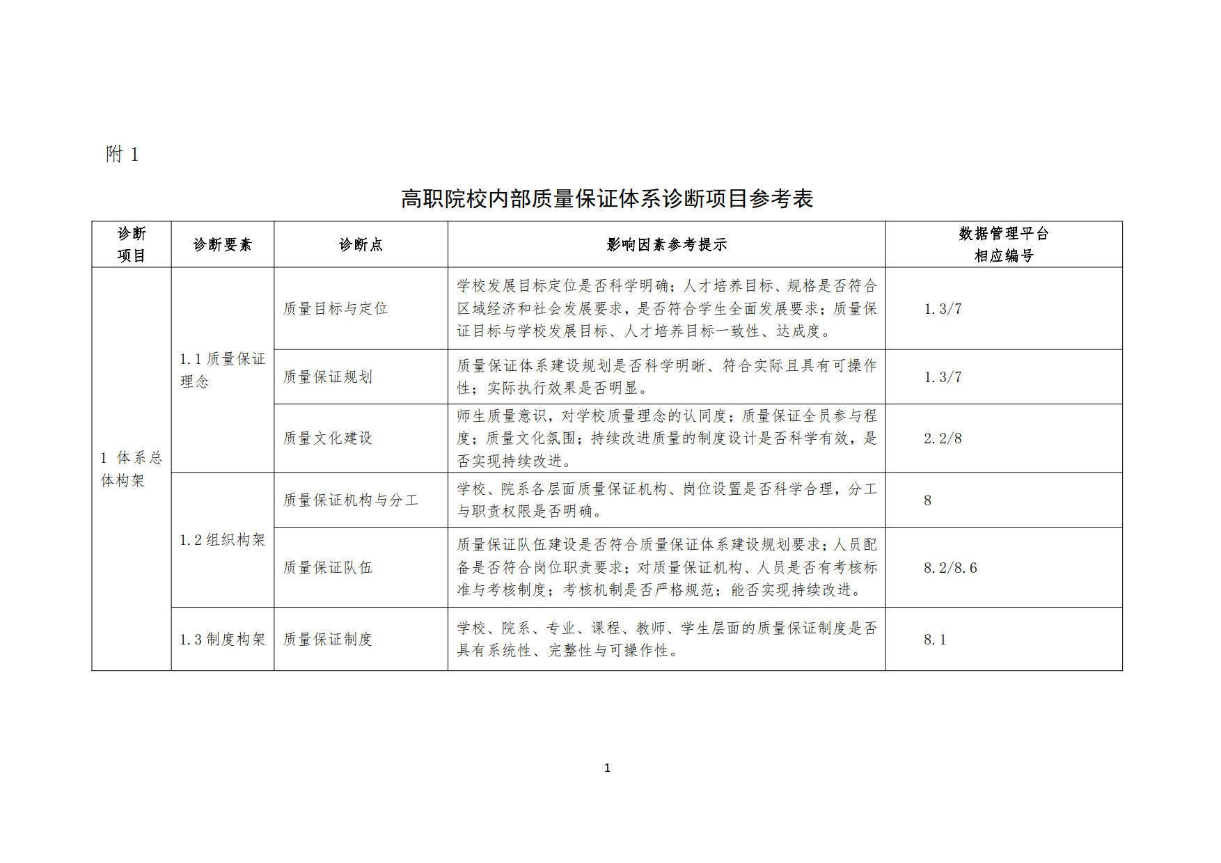 附:1.高等职业院校内部质量保证体系诊断项目参考表