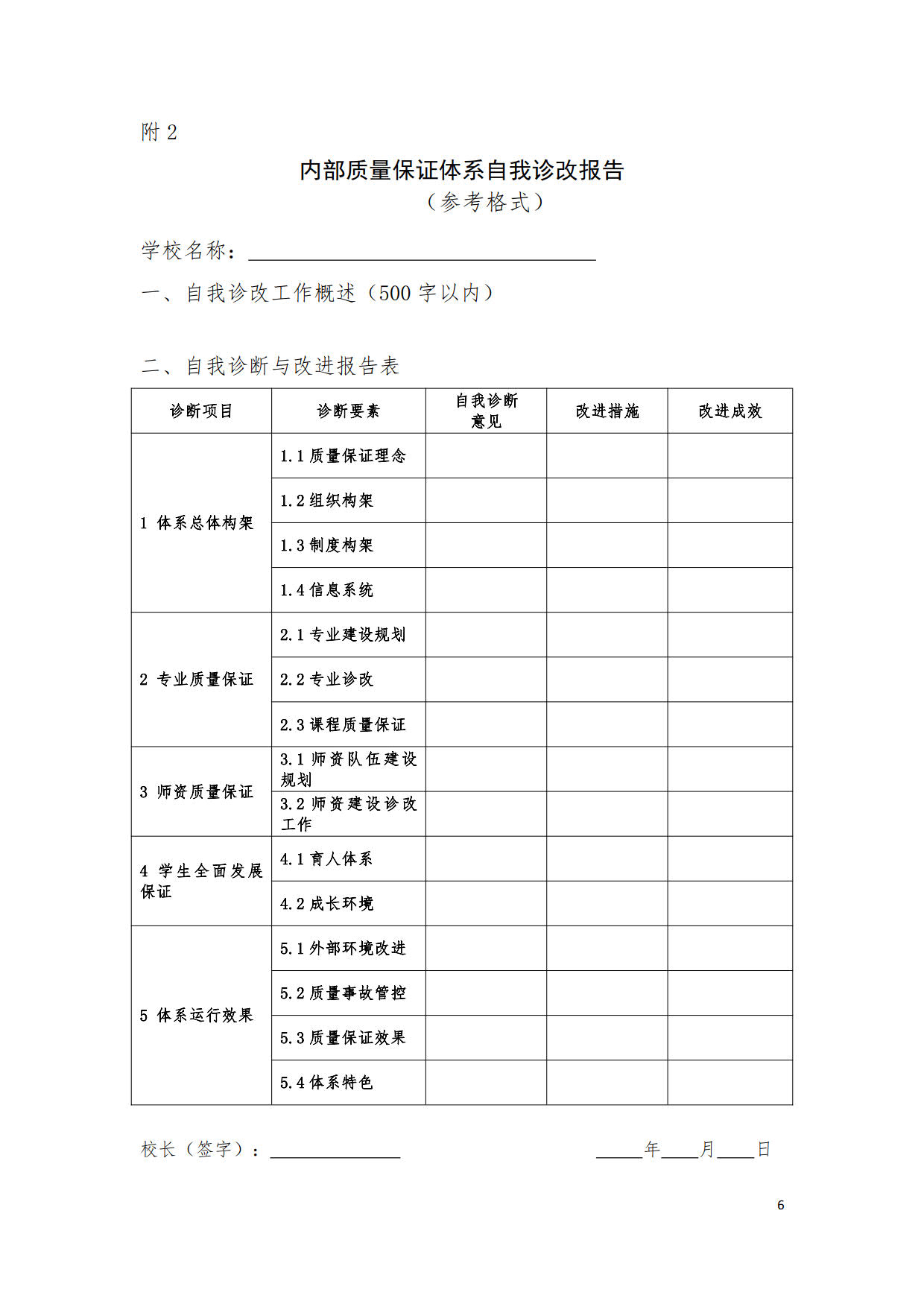 (1)学校的《内部质量保证体系自我诊改报告》(格式参见附件2)。