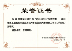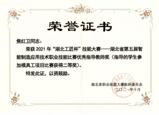 近一年来,模具专业学生累计获得省级三等奖以上奖励20余项,获奖学生30余人,继模具18级学生陈澳荣获2020年度湖北省“大学生自强之星”、“中国大学生自强之星”荣誉称号后,模具19级学生童磊又获评2021年度湖北省“大学生自强之星”荣誉称号。2021年10月,模具专业学生参加湖北省第五届智能制造应用技术职业技能大赛模具工赛项获评二、三等奖;12月,参加全国三维数字化创新设计大赛获评2项省级特等奖并在全国比赛中获二、三等奖;2022年6月,参加全国3D大赛14周年精英联赛获评省级特等奖3项。肖志余老师获评2021年湖北省教学能力大赛二等奖,焦红卫老师获评湖北省第五届智能制造应用技术职业技能大赛优秀指导老师。