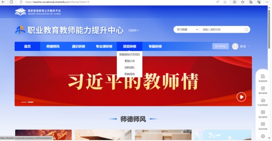 第二步:菜单栏选择“项目研修”→“职教国培”