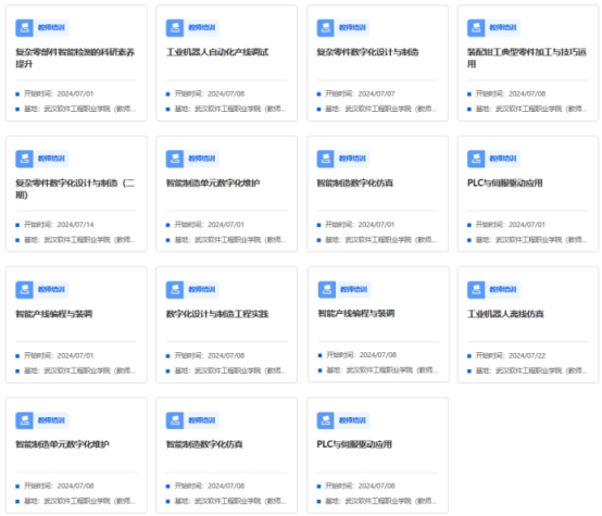 11 | 智能制造单元数字化维护 | 07.08~07.14 | 30 | 湖北武汉 | 高职 |